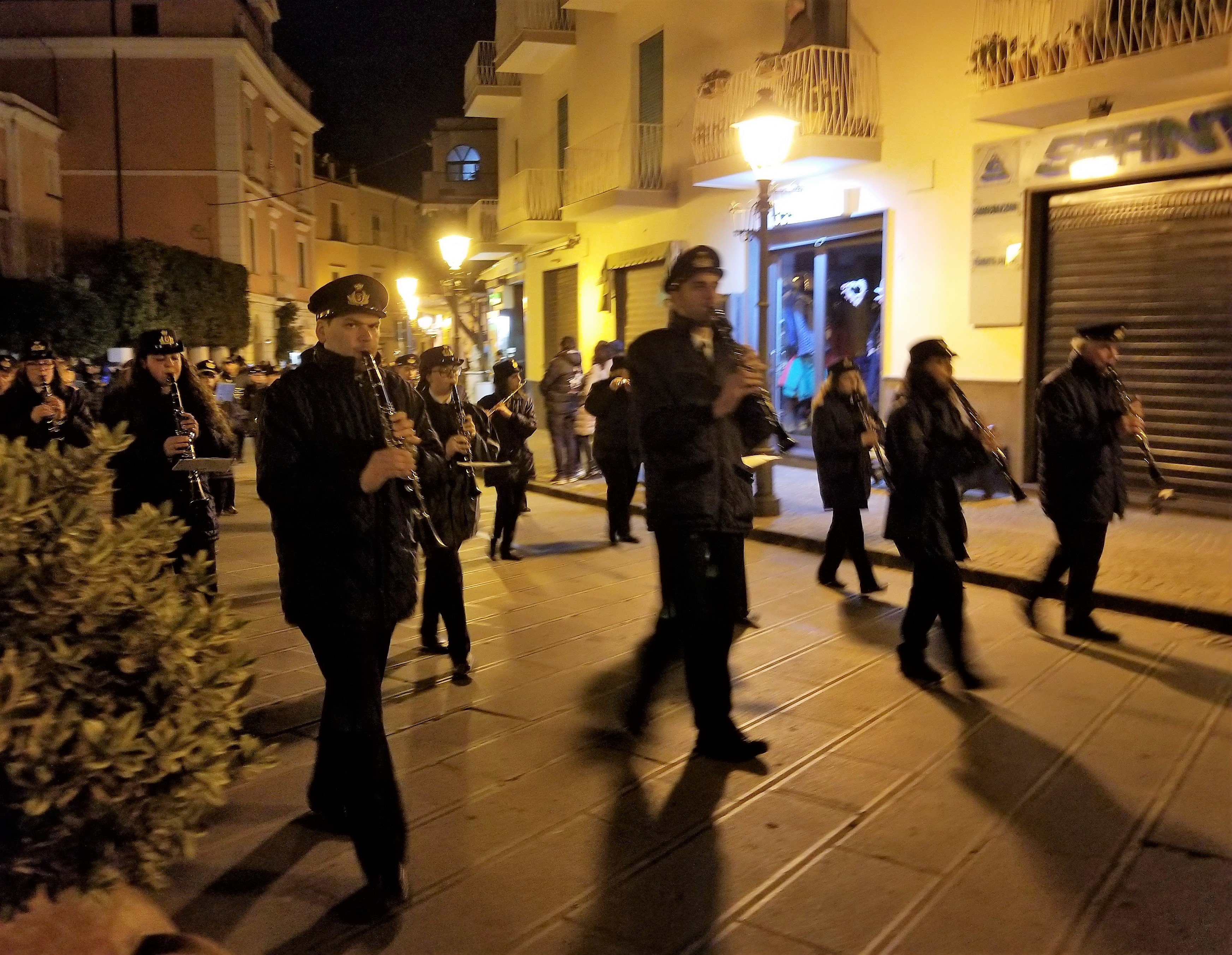We are visiting during the week leading up to Easter Sunday and we learned from our hotel front desk that there is a special cultural and traditional event called the Processions taking place that we can watch. we can as we visited towns on the Sorrento Peninsula we’ve seen posters for something called the Easter Processions. In the week leading up to Easter, religious fraternities — called confraternities — organize parades that reenact the passion of Christ. Some processions are done in the evening around 9 p.m. and some occur in the early morning hours around 3 a.m. All the processions include a male chorus, musical instruments and robed individuals carrying artifacts of religious significance.