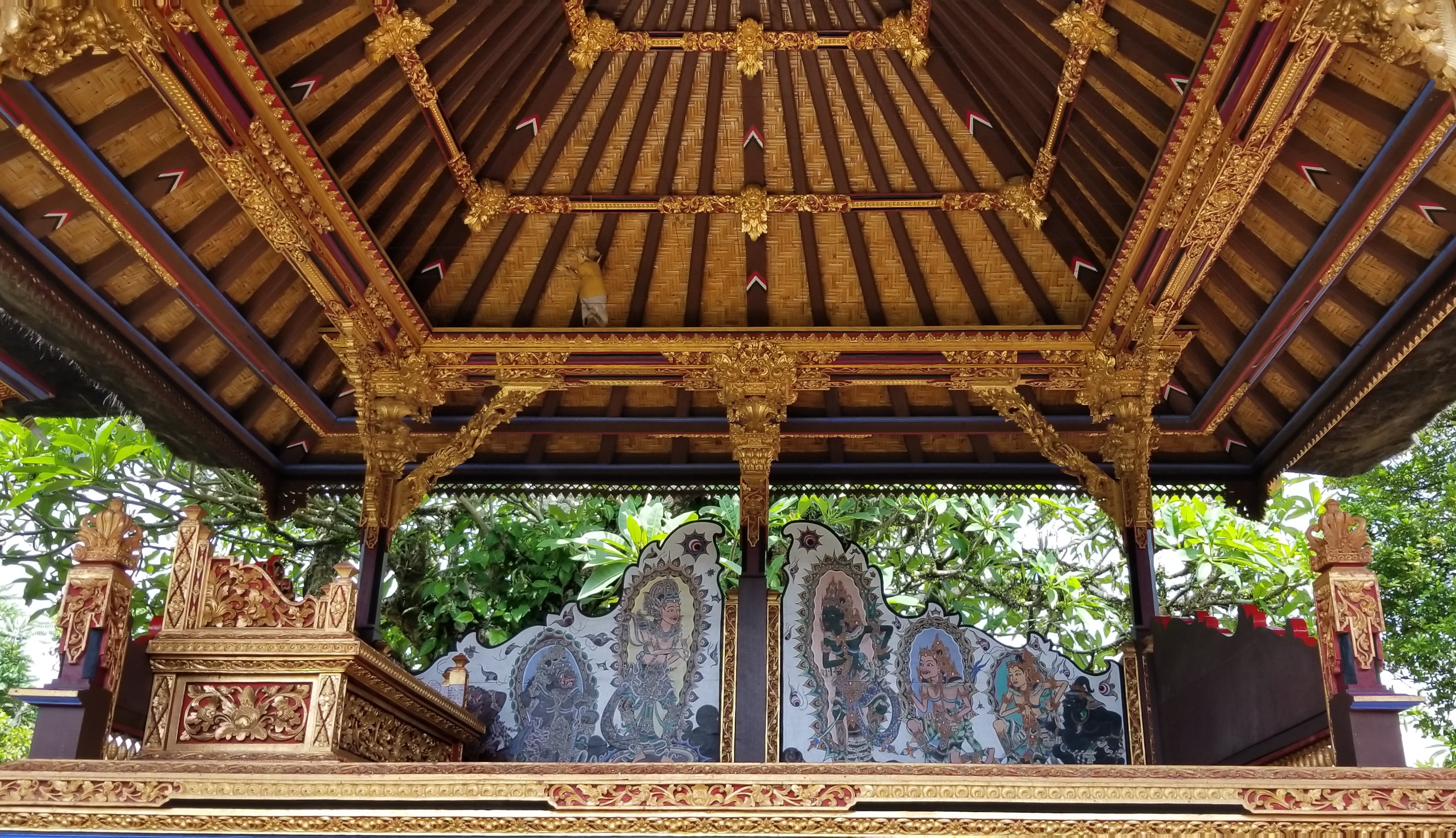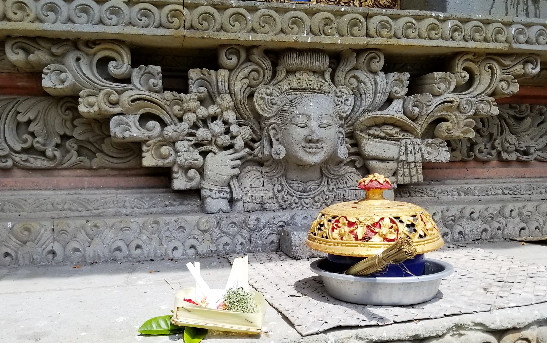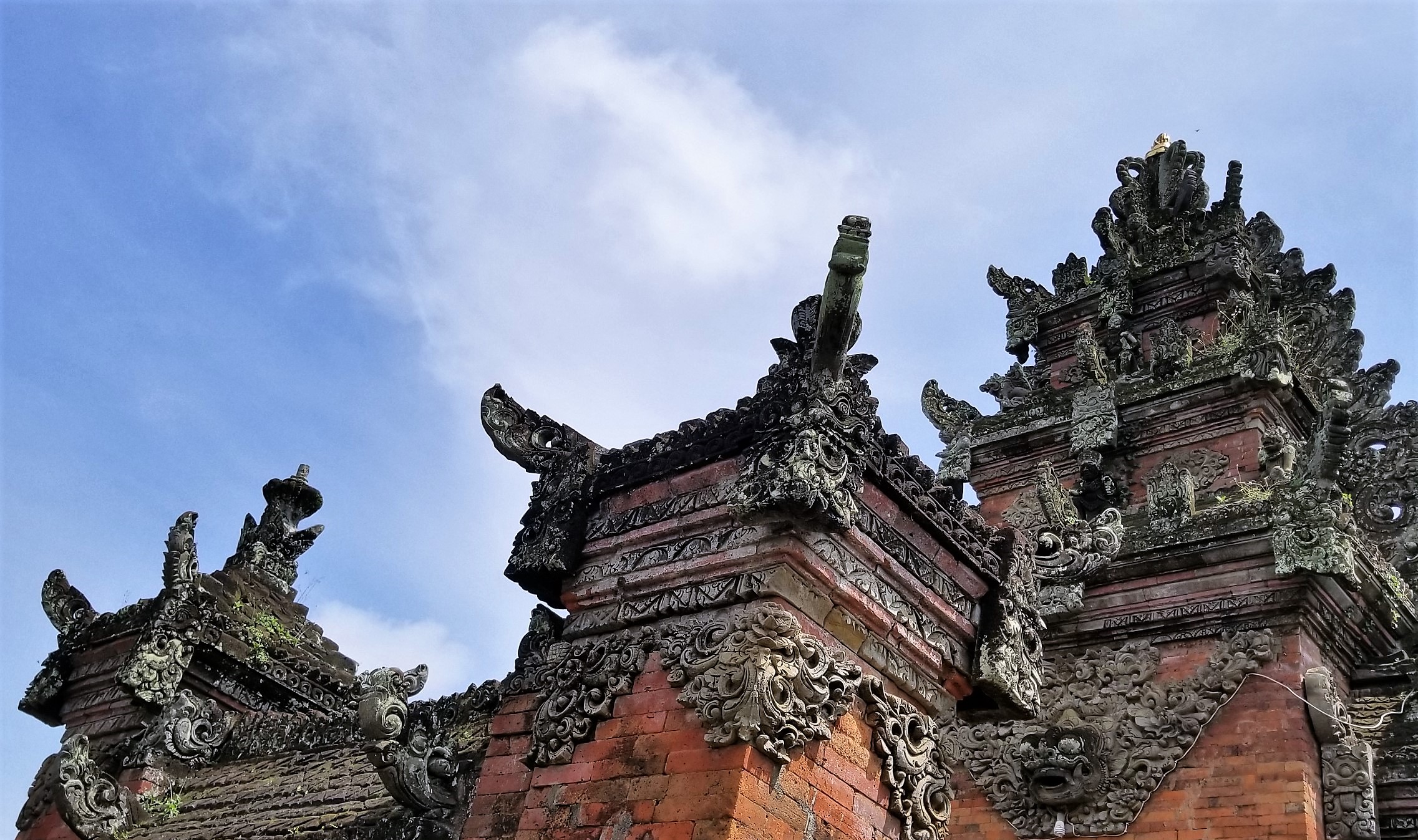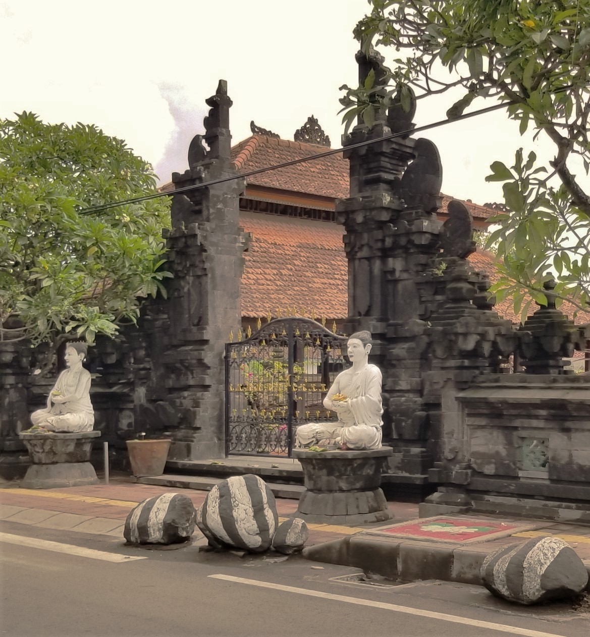 Balinese Hinduism divides the cosmos into three layers; suarga, buwah and bhur. This is similar to other religions. Suarga is the ‘heaven’ where the gods live. Buwah is here on earth where people live, and Bhur is where the demons live or ‘hell’ where peoples spirits are punished for their misdeeds on earth. Hindus further believe this is mirrored in the human body (head, body and feet) and also in the shrines outside of Baliese buildings.