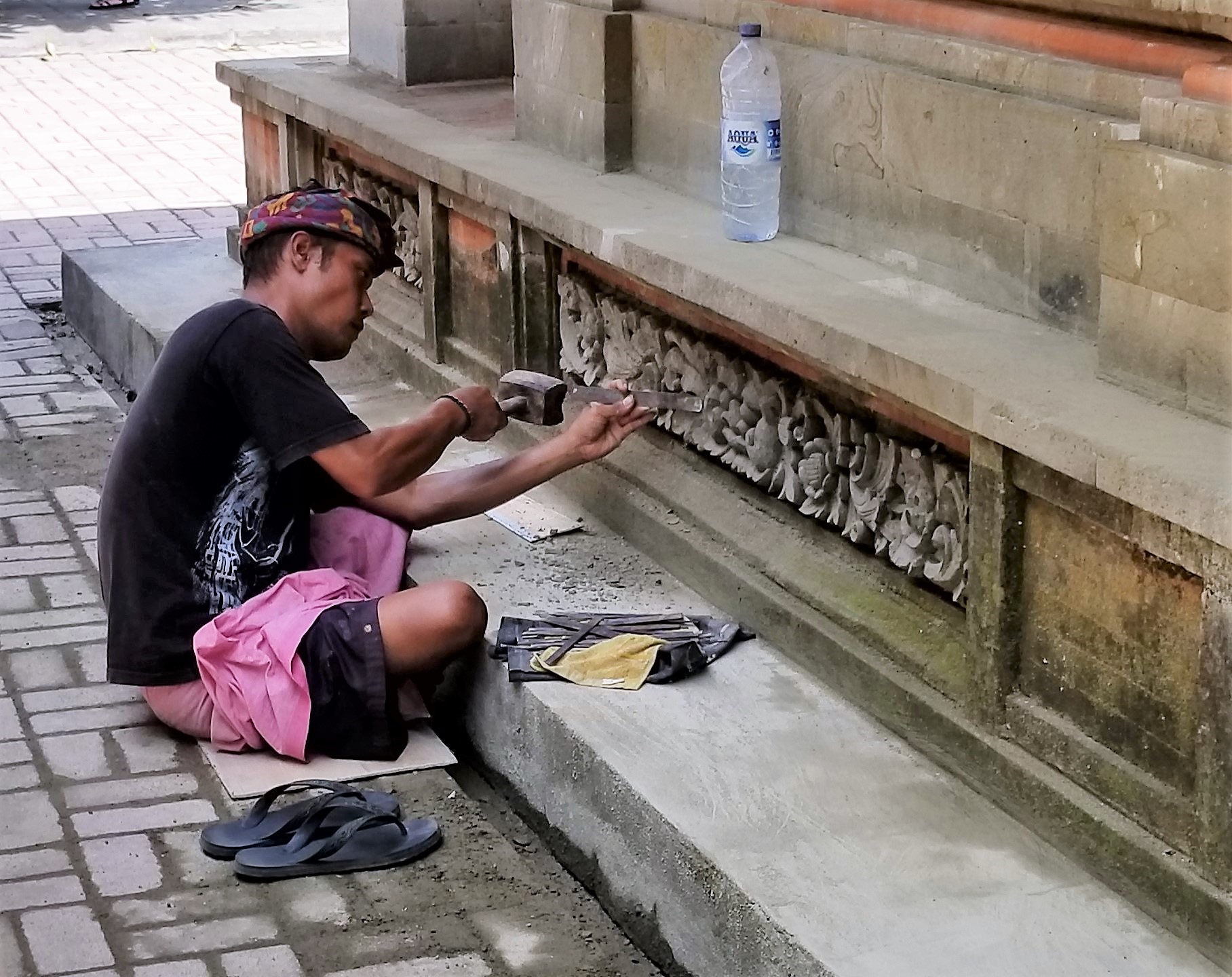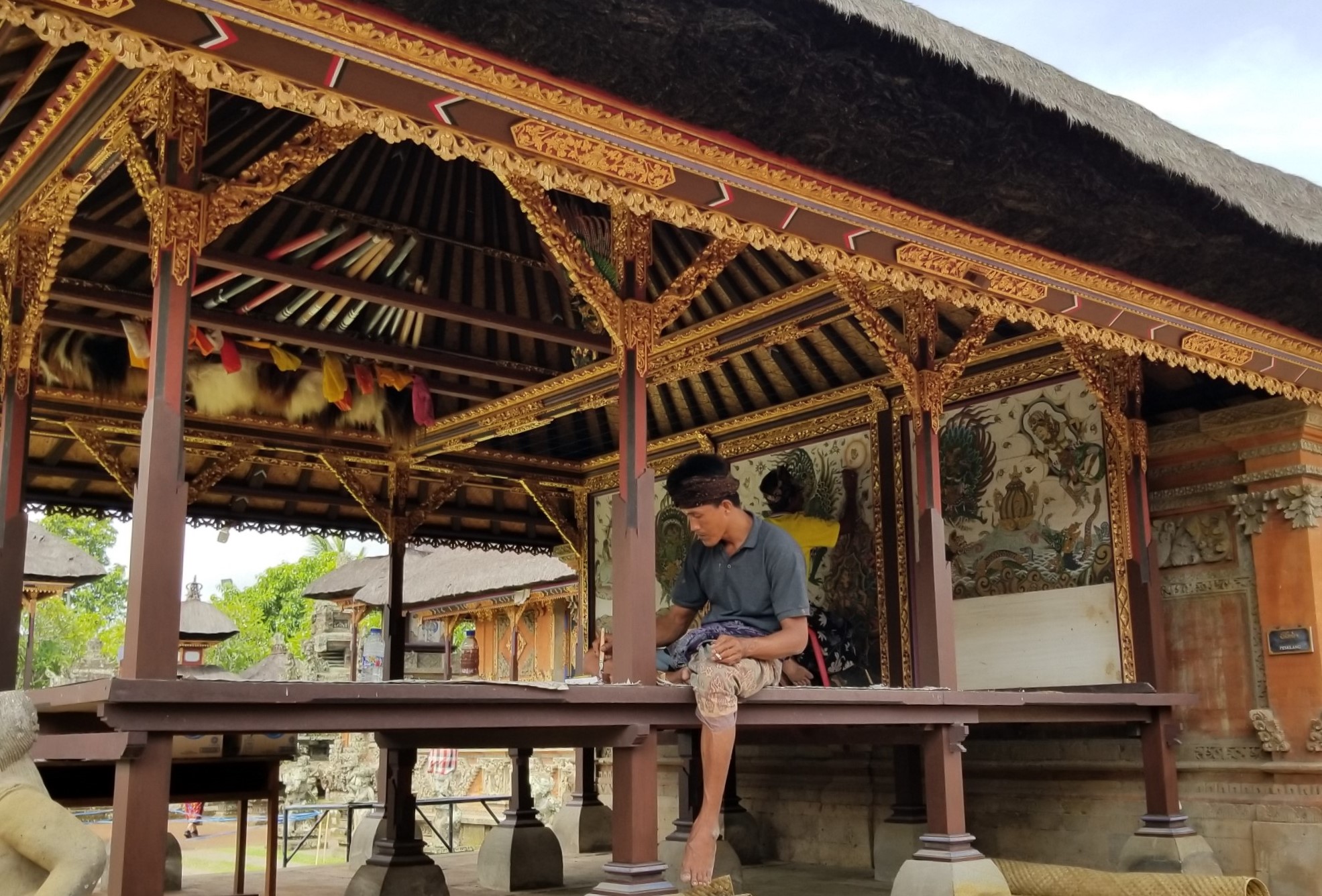 Desa Pakraman was originally built in 1020AD. For the past 1,000 years it has been cared for by the local villagers. As we entered, there was a craftsman working on a hand carving that adorns one of the buildings.