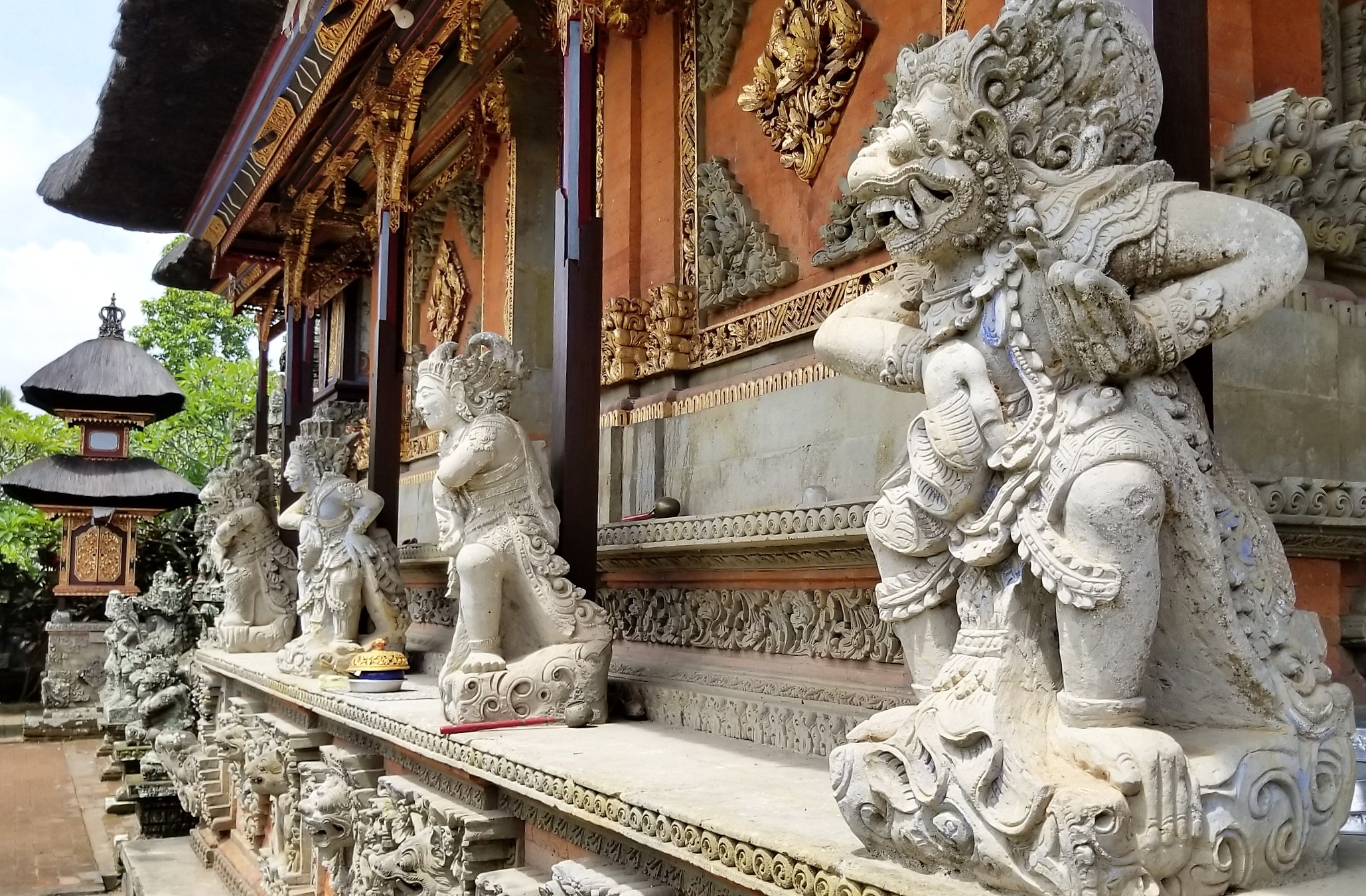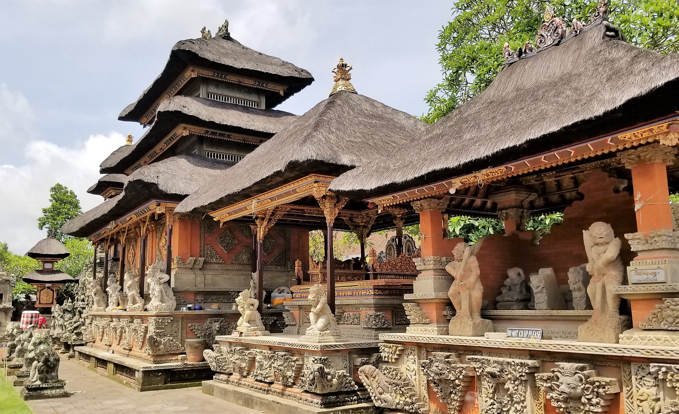 In the village of Batuan, there are three temples; Desa, Puseh, and Dalem. Each temple is dedicated to worshiping one of the three hindu gods. The Hindu Gods are: God Brahma (the Creator), God Vishnu (the Preserver), and Lord Shiva (the Destroyer).