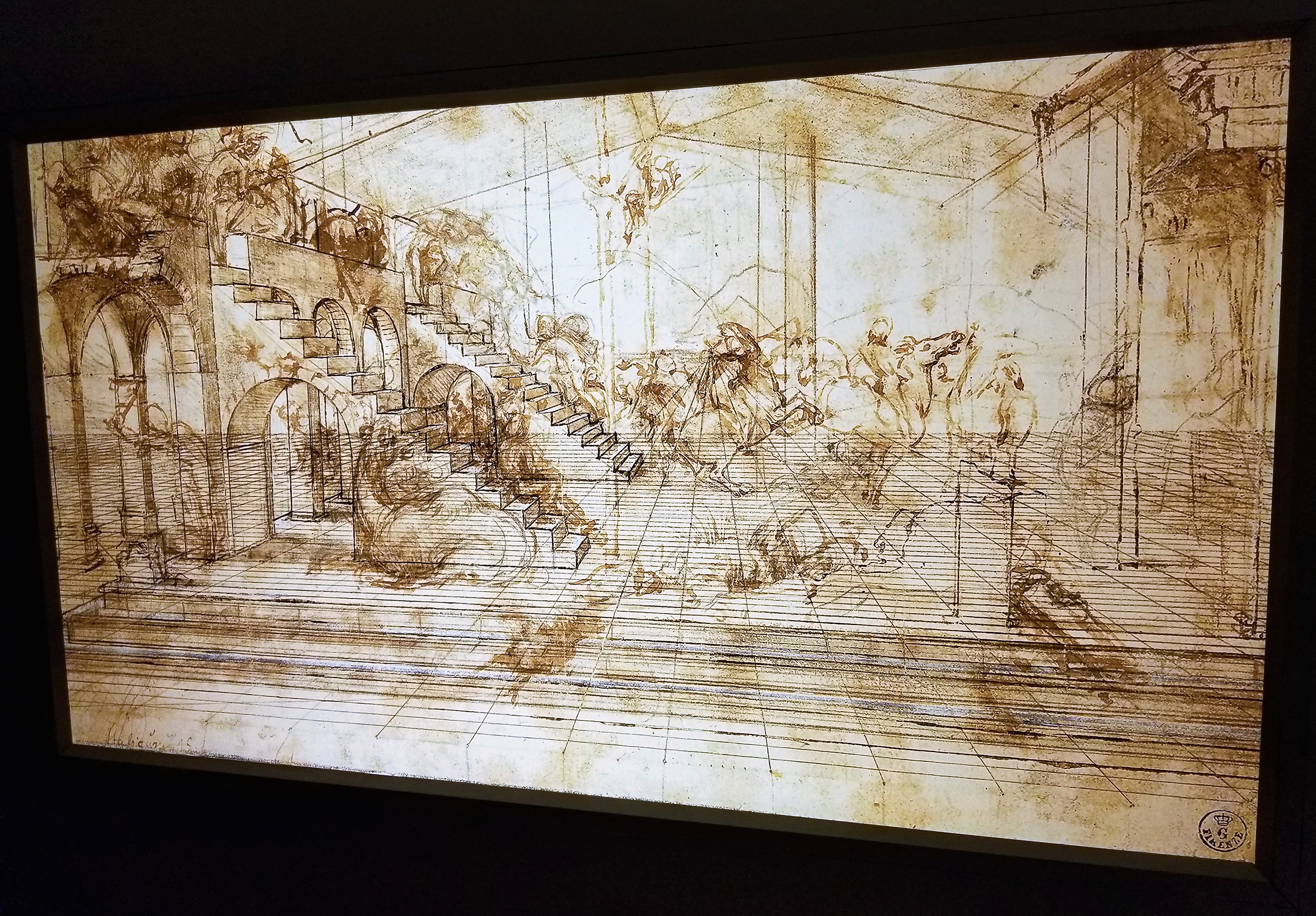 Da Vinci’s line drawings fascinated us. We enjoyed learning how artists used math to create perspective and the illusion of depth. The line drawings (pictured above) showing how the artist used the concept of a vanishing point in the painting. This felt like someone had pulled the curtain back and revealed da Vinci’s secrets to us.