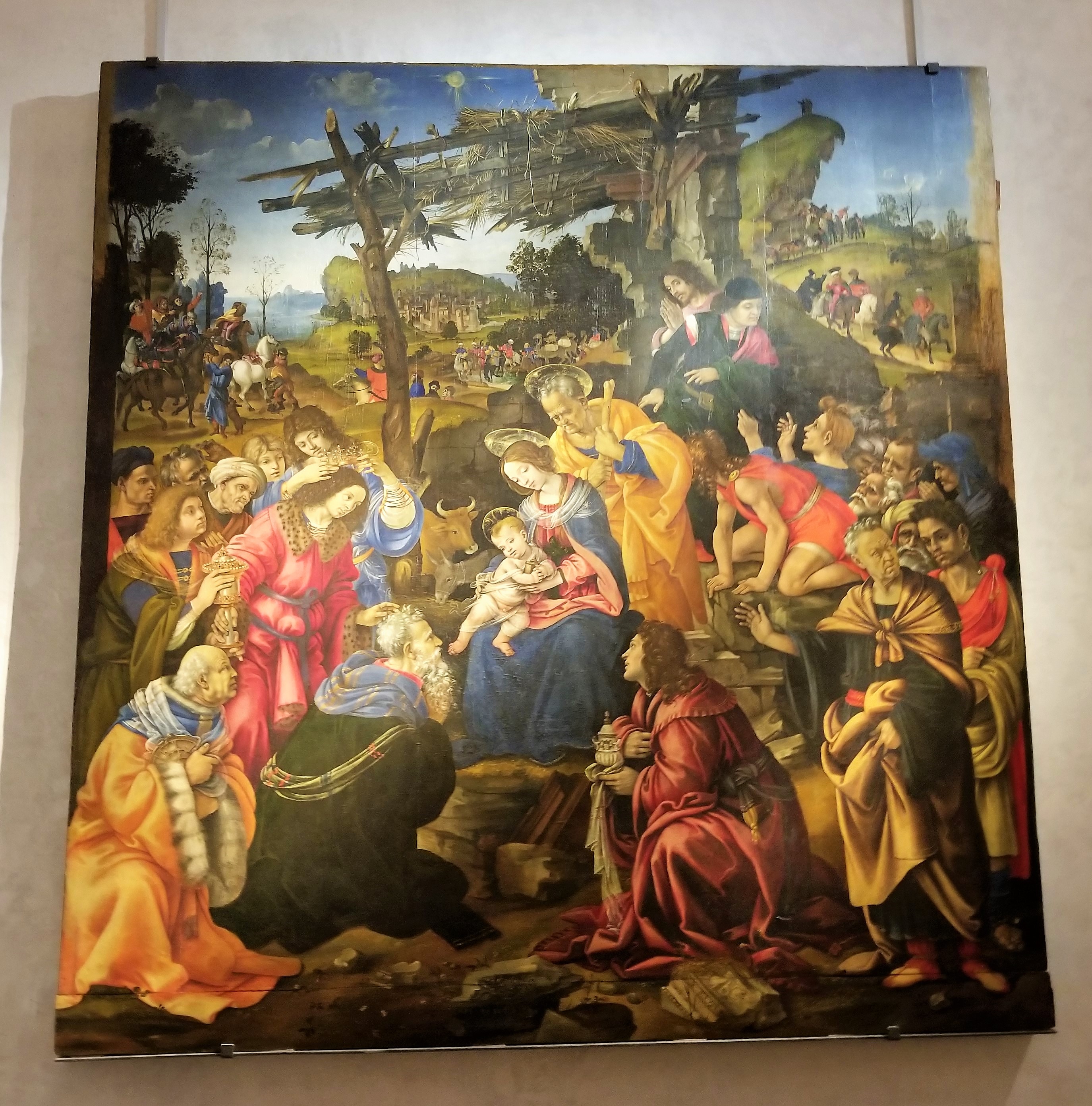 The Uffizi’s collection is vast and considered one of the finest in the world. We were stunned by our ability to get close to the masterpieces. Our Roman Guy guide navigated us into almost a private viewing of the Doni Tondo or Doni Madonna. This is the only surviving finished panel painting by Michelangelo.