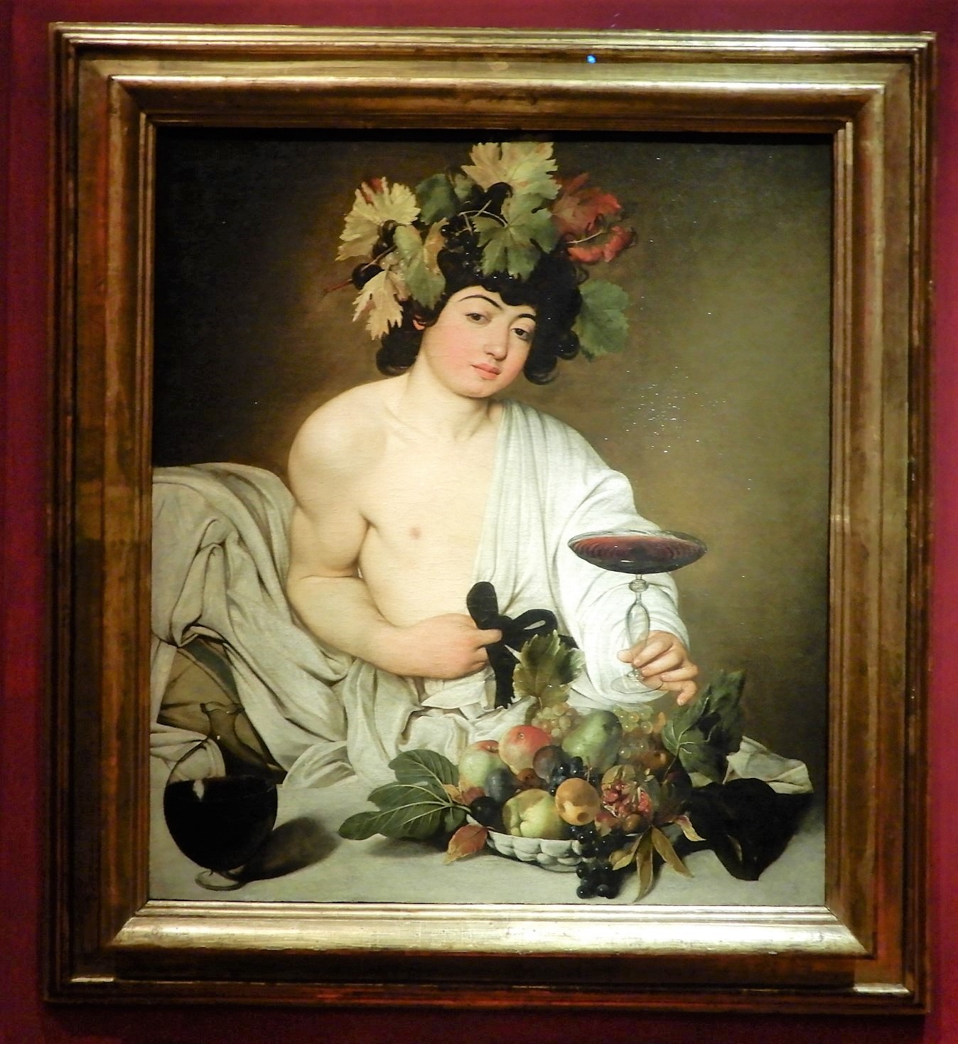 Wrapping up the tour we visited the Caravaggio gallery. Here we saw some significant works by Caravaggio such as the Medusa. The Caravaggio hall also has other works by the master, whose full name was Michelangelo Merisi da Caravaggio. He died tragically at 39 years old. Reports on the cause of Caravaggio’s death are unclear but vary between fever, murdered or lead poisoning. His painting inspired the Baroque. Below are two of his other masterpieces, the sacrifice of Isaac and Bacchus with his glass of wine.