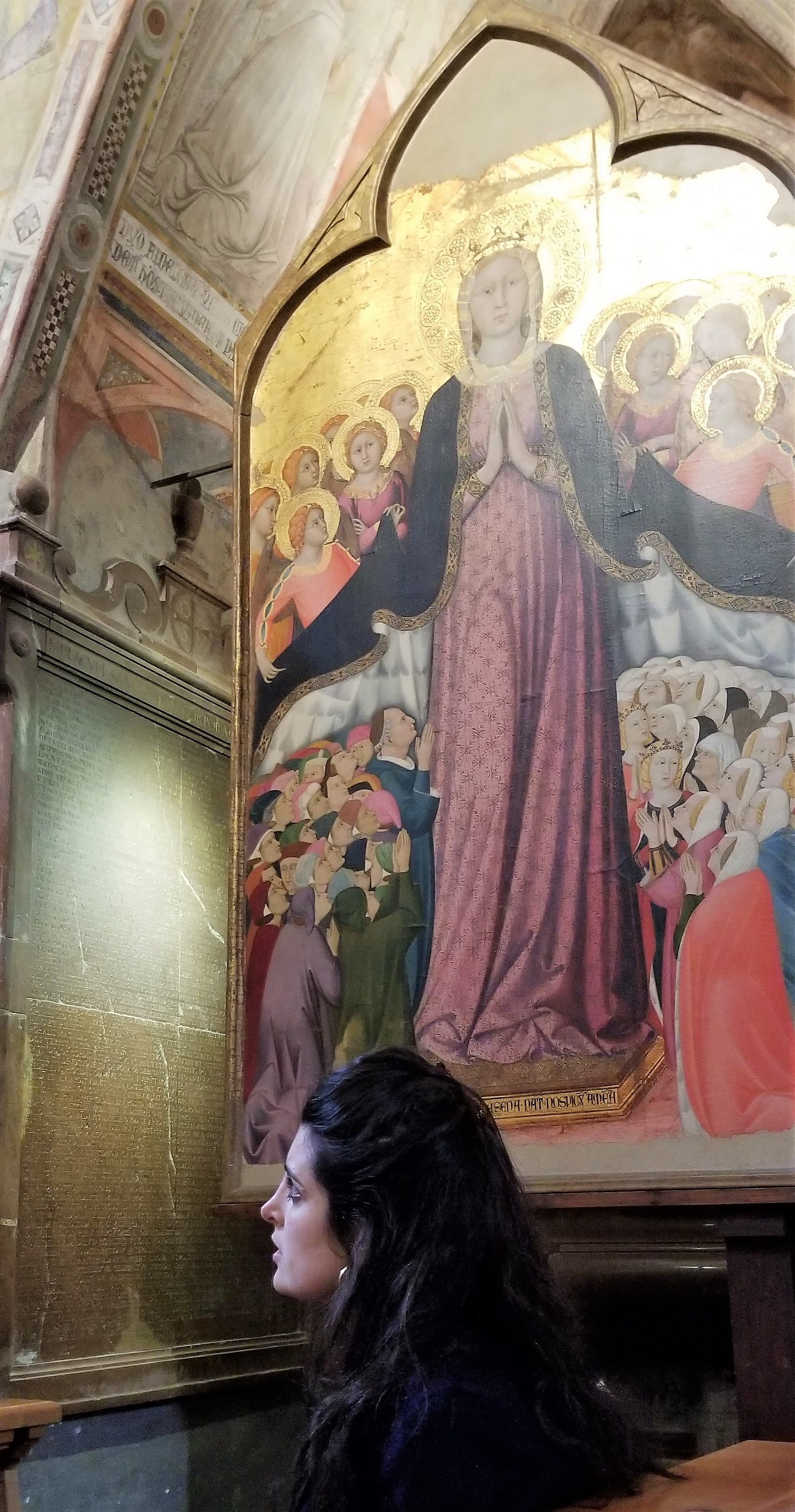 Our Airbnb host, Jasmina, had instructed us to wait for a “C” bus at the top of the Funicular.  After watching several “A” busses and “B” busses go by we grew concerned about locating the “C” Bus.  We called Jasmina for guidance and she readily offered to pick us up at the station to our relief.  As it turned out, the “C” bus was not running that day because it was Easter Monday — the day after Easter and a major business holiday in Italy.  Five weeks into our two months in Italy we have learned that this country celebrates many holidays and transportation is often on a reduced schedule on  those days.  Something travelers need to be aware of