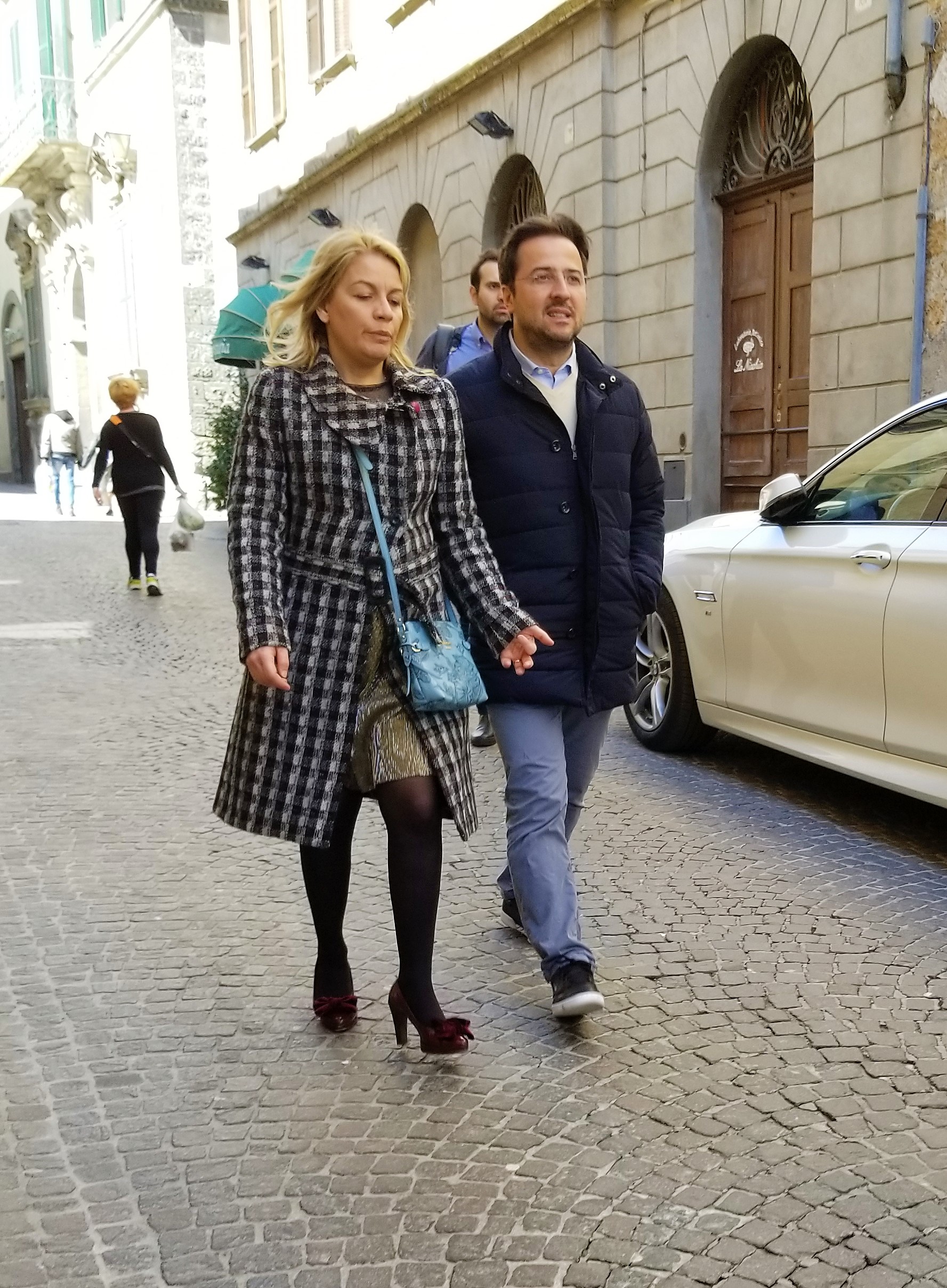 There seems to be a strong retail clothing influence here, some big names like United Colors of Benetton has a couple of outlets.  Lots of Italian names and sumptuous shop windows for us window shoppers.  Even in such a small  town people dress up here a bit more.  Women and Men who appear to be past retirement age definitely dress very traditionally.  The women seem to wear skirts and tights and sensible leather shoes when shopping, men often wear a sports coat usually with a wool scarf.  Younger women tend to wear ankle turning heels on the cobblestones.   It’s a fun place to see and be seen.