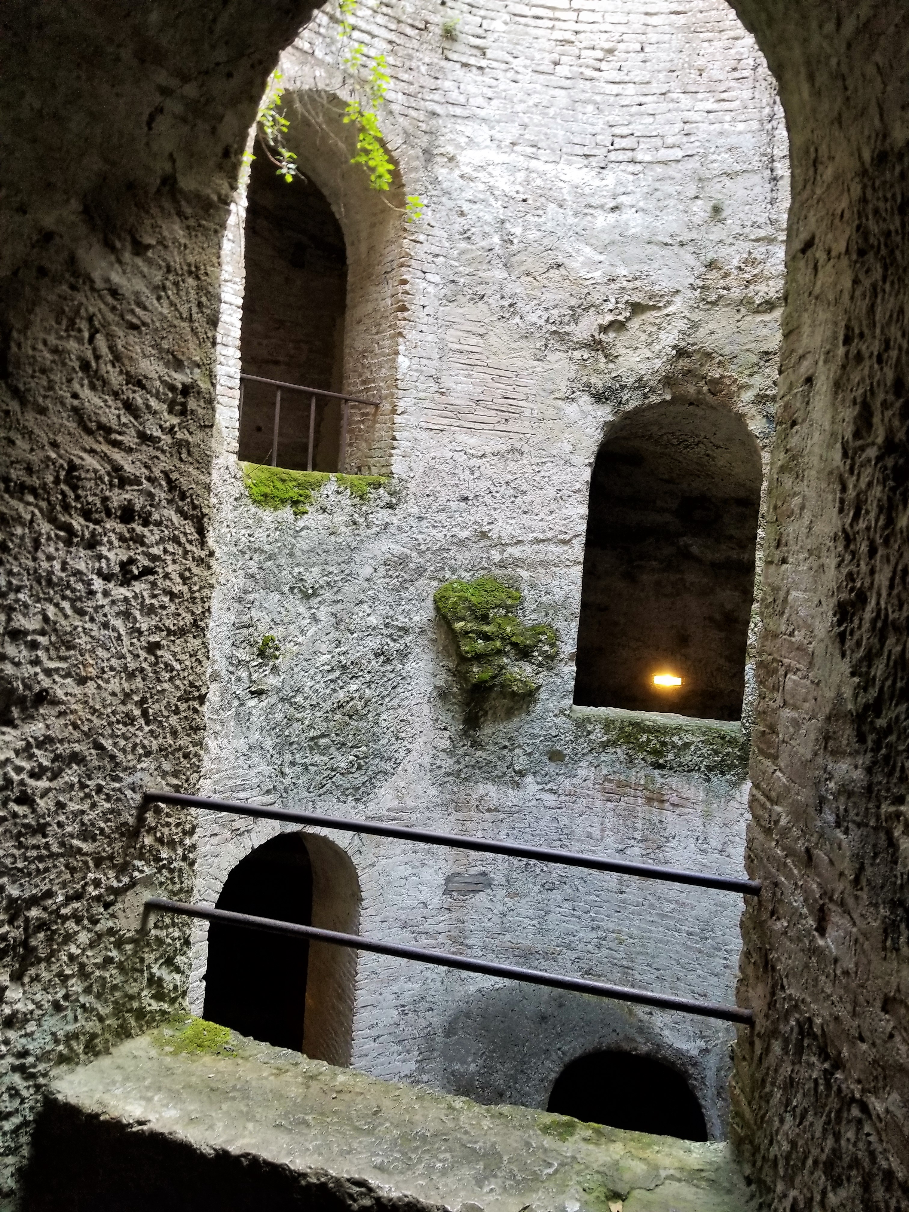The Etruscans were experts at digging and were of small stature and could climb down these small wells that were about 2′ x 3′ using the foot and hand holds seen on the bottom side of the well.