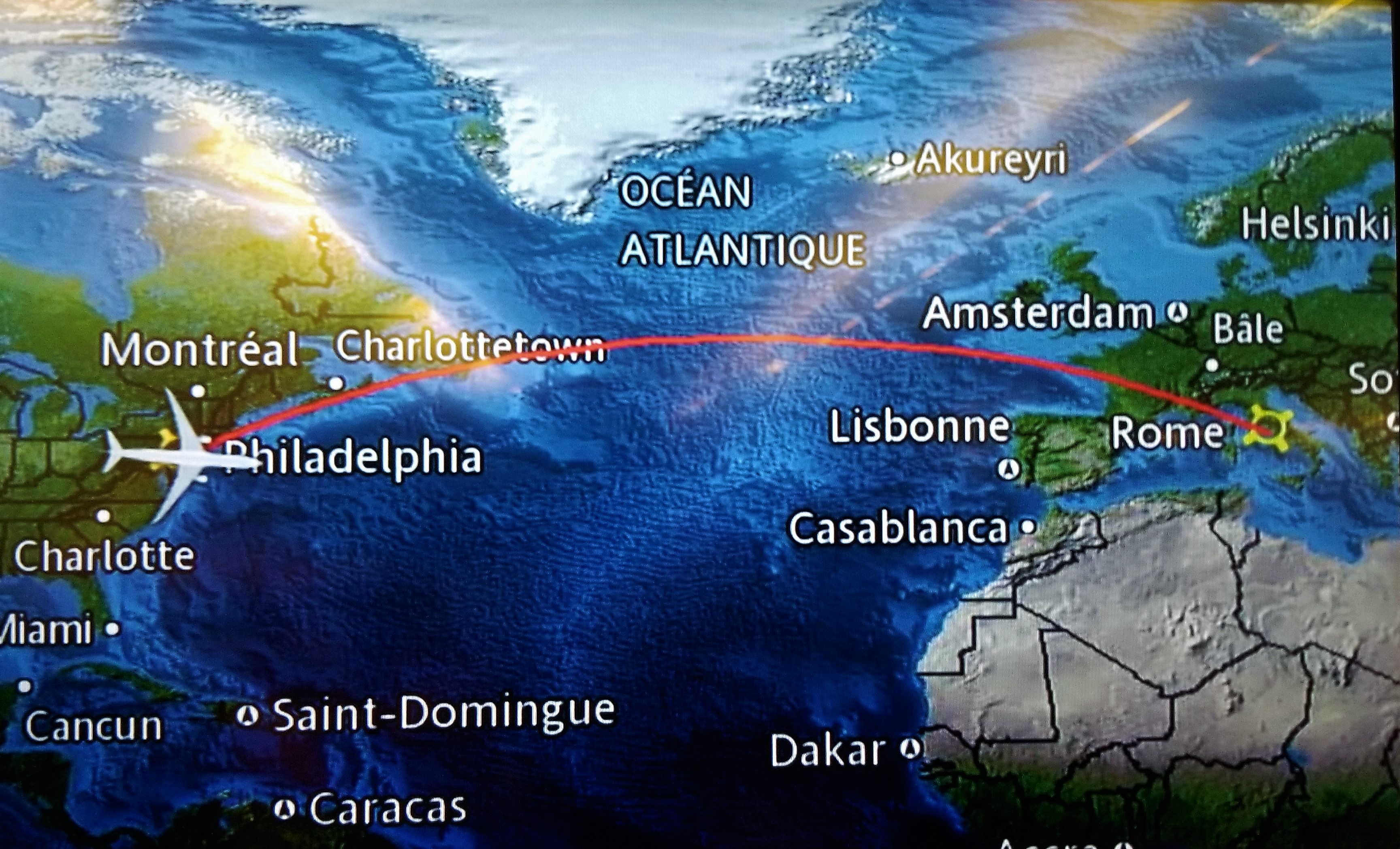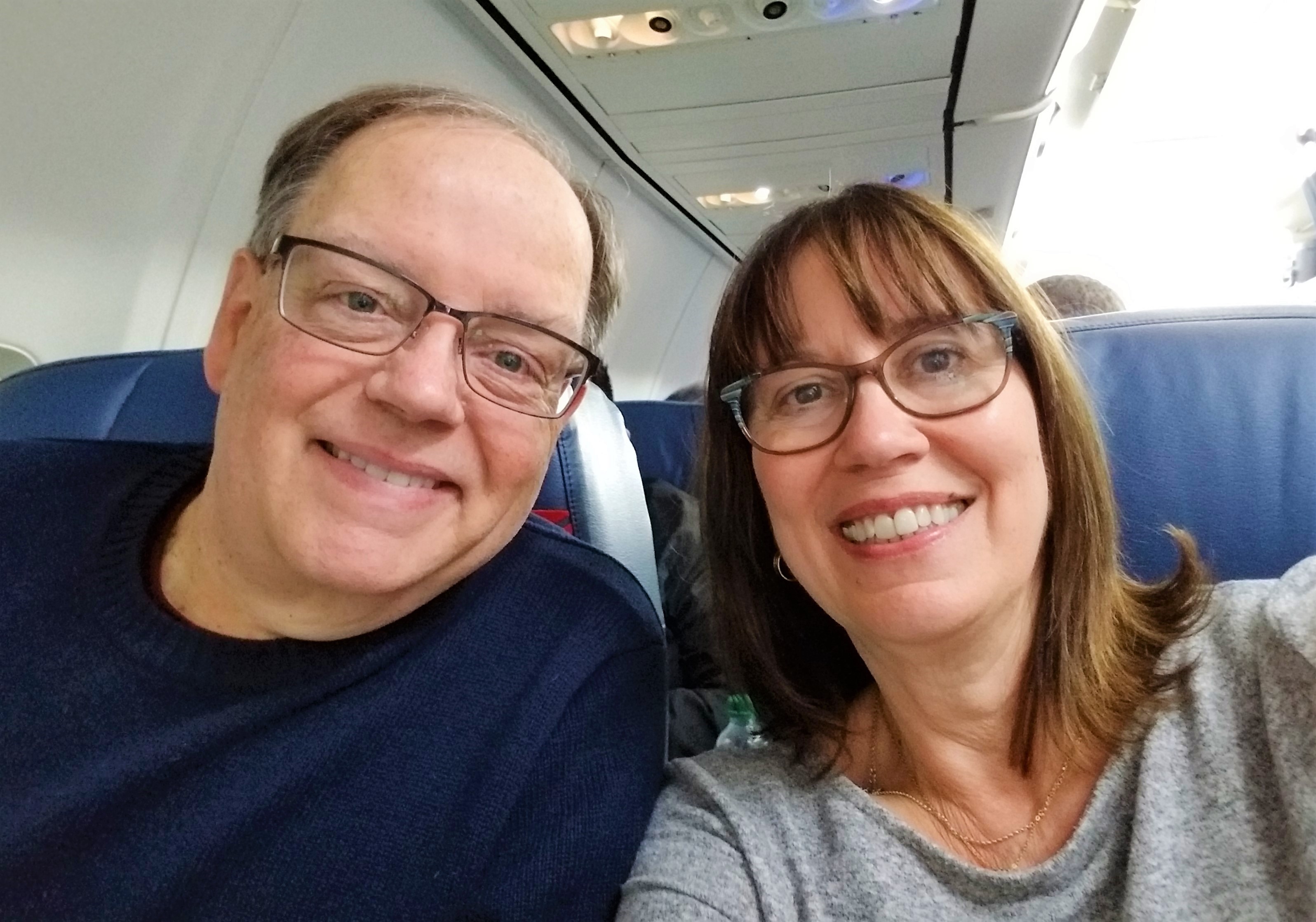 In theory there was plenty of time to accomplish this and it should have worked fine. In real life, we made every rookie mistake imaginable! First we forgot a signature on the application — so we shipped new signature pages. On our second attempt, our applications are rejected because the passport photos are five days older than permitted. We shipped new photos overnight. Each mistake we made burned through a few of our valuable days. We decide to fly to Philadelphia as originally planned and keep our fingers crossed the documents will be issued in time for us to fly to Rome. At least we are in the air going somewhere finally after a year of planning our Adventure of a Lifetime. We are above the clouds.