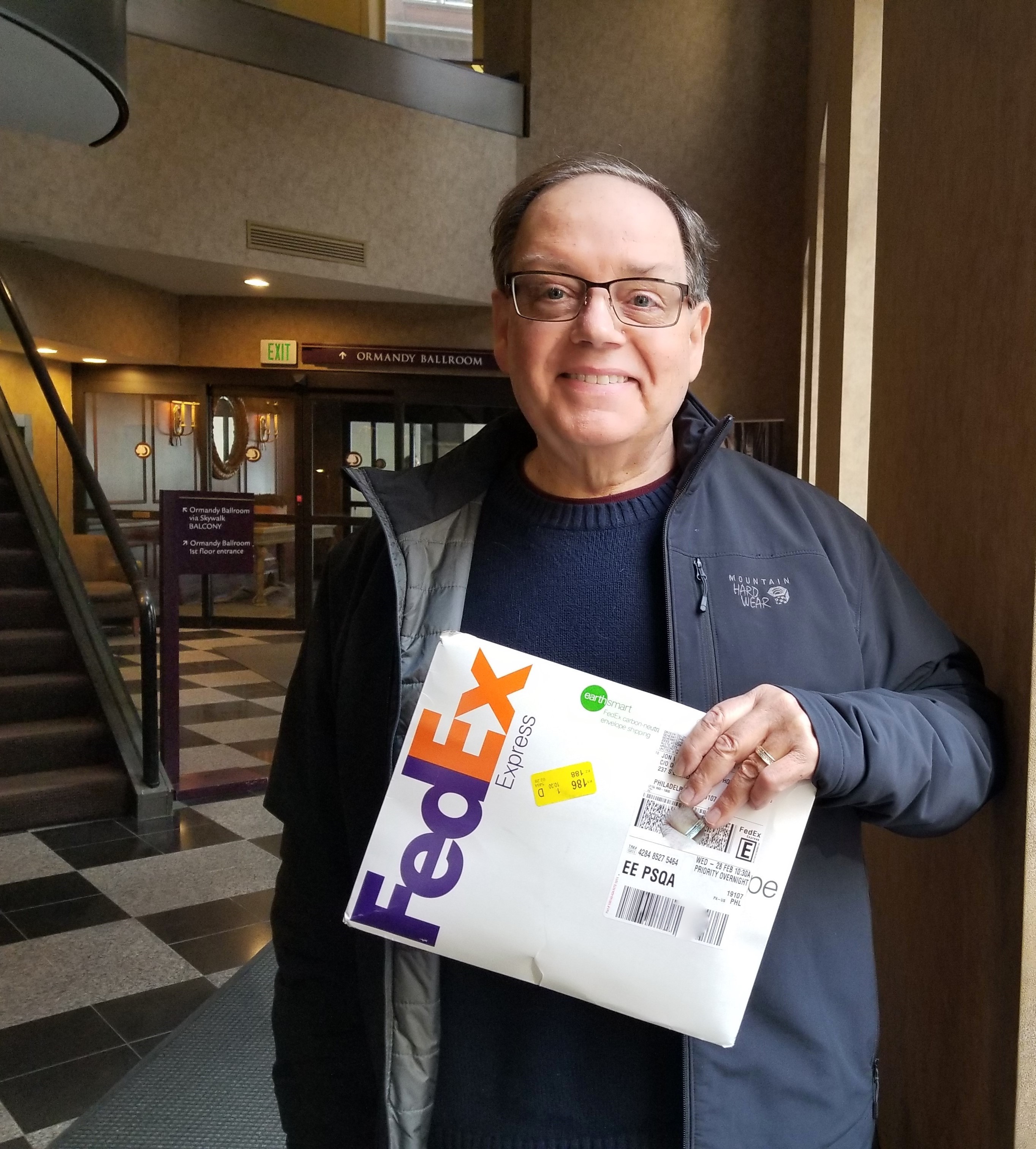 We were home free, we thought. However, overnight a winter weather system caused delays in FEDEX shipments. We checked at 10:45 a.m., 12:30 p.m. and 2:00 p.m. while we sat in the hotel lounge biting our nails. We peered anxiously through plate glass windows looking for the ubiquitous purple and orange logo of a FEDEX delivery truck. Finally, we saw the truck, ran outside and retrieved our package. We hailed a cab and headed for the airport – let the adventure begin!
