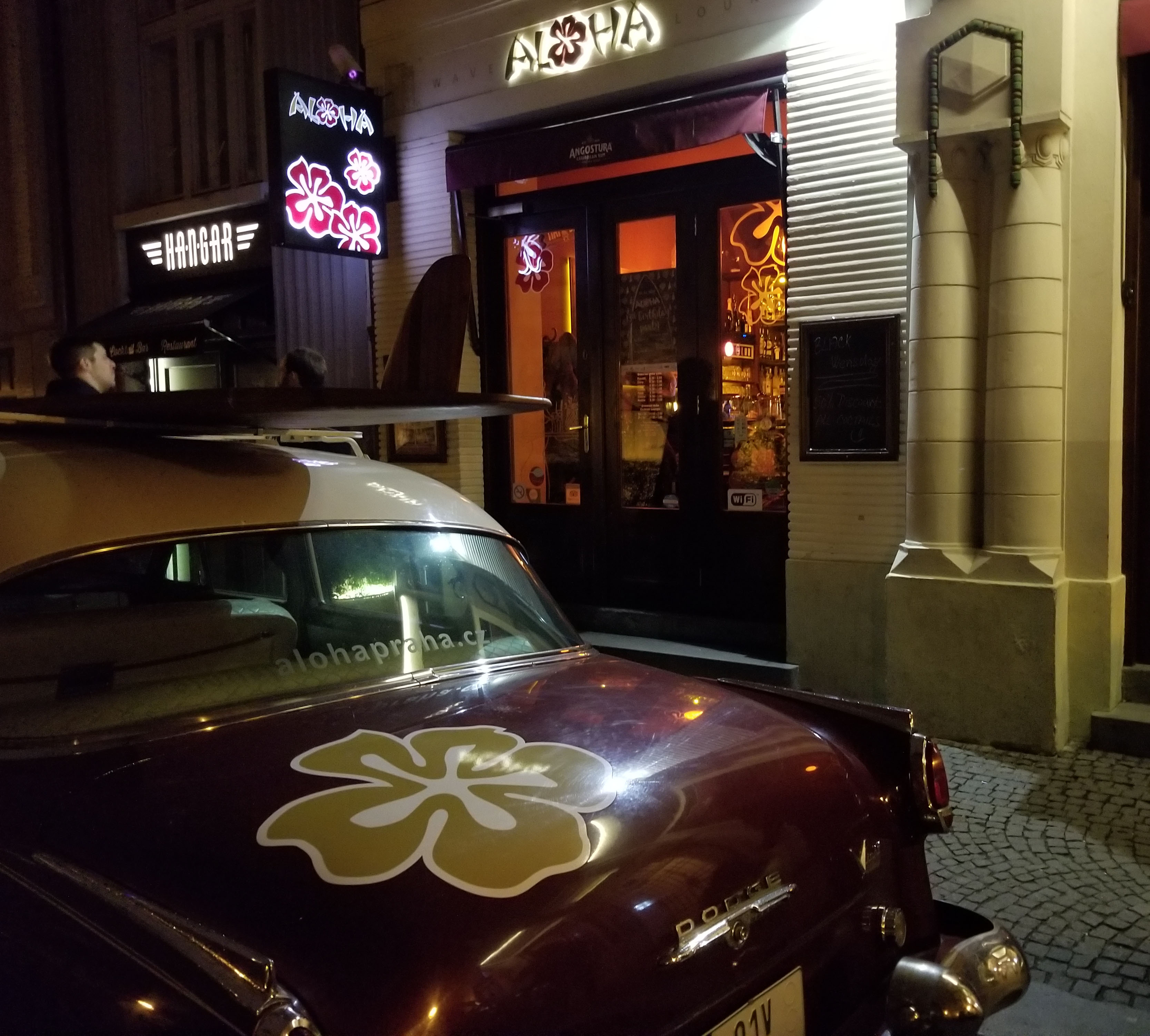 Walking around Prague we saw a number of interesting looking little out of the way spots. Down a small street near our hotel we stumbled across the Aloha Wave Lounge. The vintage car with surf board caught our eye, especially given the temperature was in the 30s that evening. It turned out to be a little tiki bar with beer, tiki drinks and a full menu. We stopped in for a drink on the way back to our hotel. What was a little surreal was sitting in a warm tiki bar with Hawaiian music, pictures of legendary surfer Duke Kahanamoku on the walls knowing it’s just 30-some degrees outside and there is not an ocean for a thousand miles.