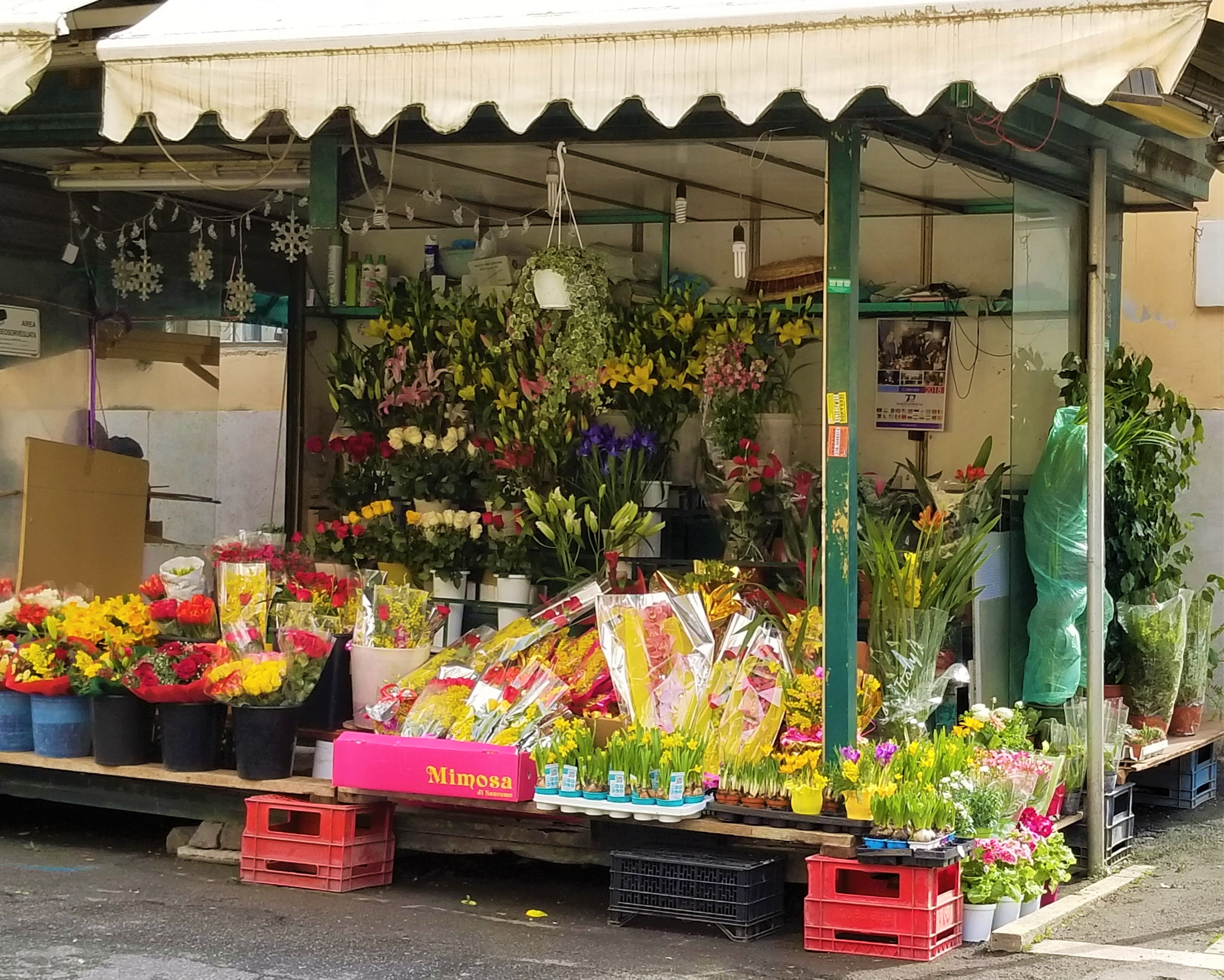 We stopped at a corner florist to buy a sprig of Mimosa flowers to celebrate Festa della Donna as International Women’s Day is called here. Last stop was at one of those tiny restaurants overlooking the Colosseum for some bruschetta and pizza.