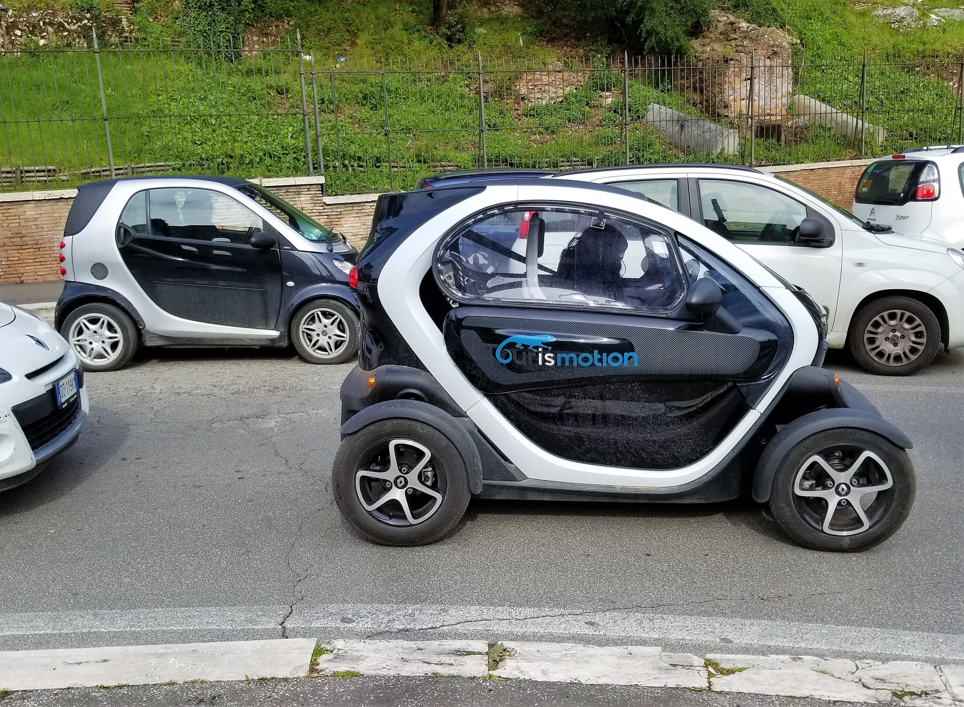 Then we noticed a landscape crew weed-eating the Ludus Magnus ruins (gladiator training facility). I guess they must keep the weeds down somehow! Sub-subcompact Smart Cars are all over the place here –we saw a woman driving what must be the tiniest street legal car – a single-seater that might not even have room for a commuter coffee cup!